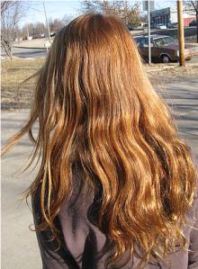 I ask you: does that girl have hair the color of wheat and summer strawberries? No. She has dishwater blonde hair, the color mine was in high school. This is wheat and summer strawberries: