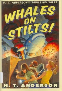 My first impression of M.T. Anderson is that he’s brilliant. Odd, sure. But brilliant. He’s another one that tickles my sense of humor just right and I find myself laughing out loud, often. Sure, the plot — Lily’s, our main heroine, dad is working in an abandoned warehouse for a “man”, Larry, who wears a bag on his head, helping him make stilts for whales, but it turns out that Larry is set on world domination, but only Lily and her friends Katie and Jasper can stop him — is really very weird. But, it wasn’t the plot that made the book so, well, great. It was the little asides, the footnotes, the fact that the book was littered with random ads for dime-store novels — the fact that this felt, looked, and read like a 1950s adventure novel or even bad B-movie you probably have seen on Mystery Science Theater 3000 (if you’re not old enough to have seen it in the theater) — that’s what made this book so brilliant.