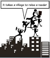 And secondly, it’s time for Share a Story – Shape a Future. The tour begins tomorrow and runs through Friday. (Shameless self-promotion: Jen Robinson asked me to be a part of her day on Friday, so do check back!) This year’s theme is It Takes a Village to Raise a Reader. Do follow along, either on the blog or on Twitter at #sas2010. I’m sure there will be many great posts and great ideas about sharing books with children.