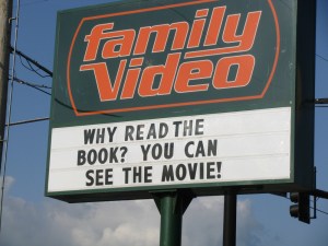 And my first reaction was “ARGH!! REALLY??” But then I got to thinking about it… we, for the most part, like our kids (and I hold this to myself, generally speaking) to read the book before they see the movie. That’s how we got C to actually read the Harry Potter series; she saw Goblet of Fire and said (honestly), “Why do I need to read the book now?” So we made her read Order of the Phoenix first before she could see the movie. (She’s now determined to make it through the next two before November so she can see Deathly Hallows in the Theater.) But, I’ve been wondering: is that rule worth it? Is is really that important that one read the book before they see the movie? (Or — brace yourself — even read the book at all?)