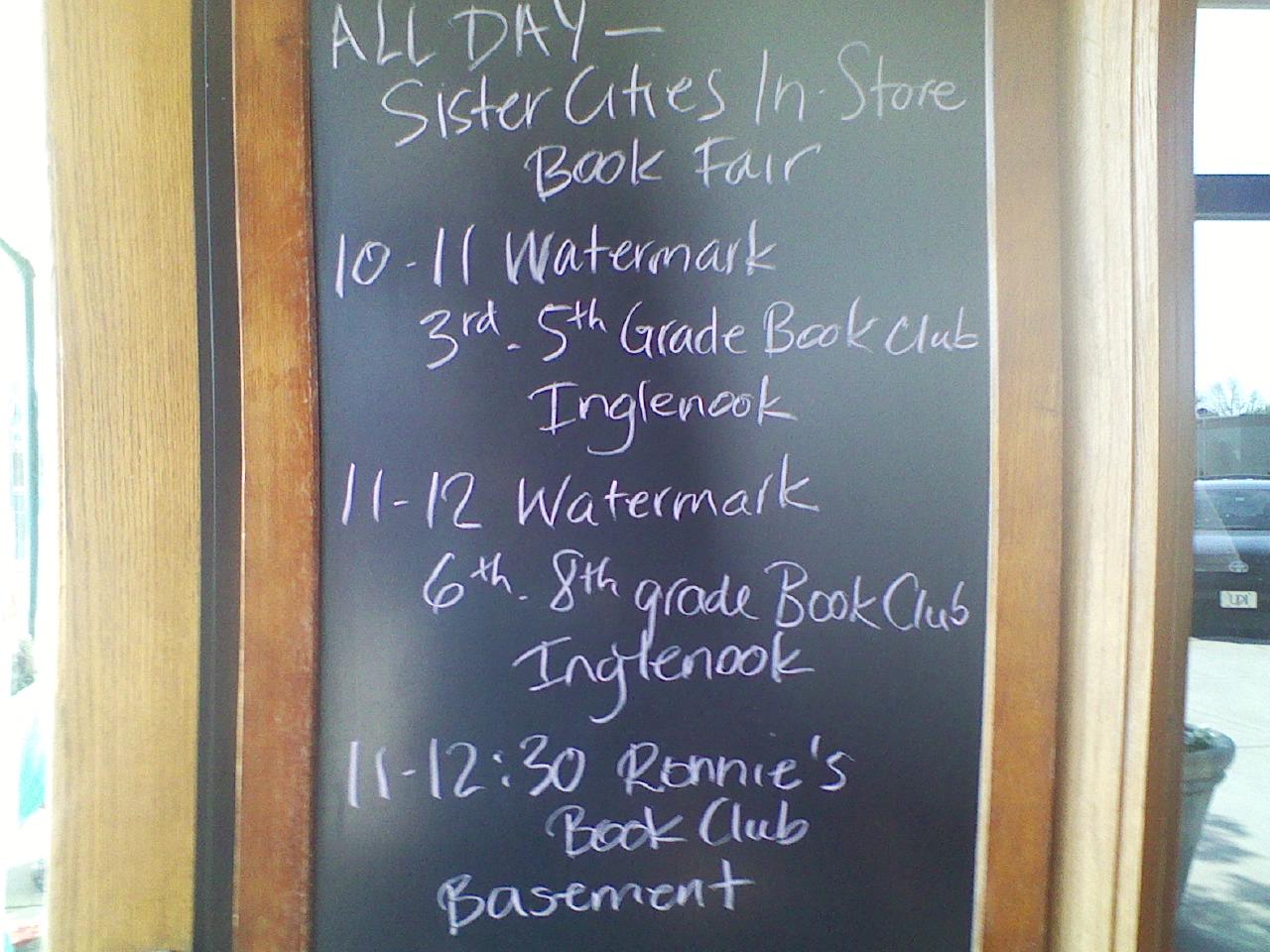 Oh: and I just realized I never updated about my book group. While we got a mention on our chalkboard,