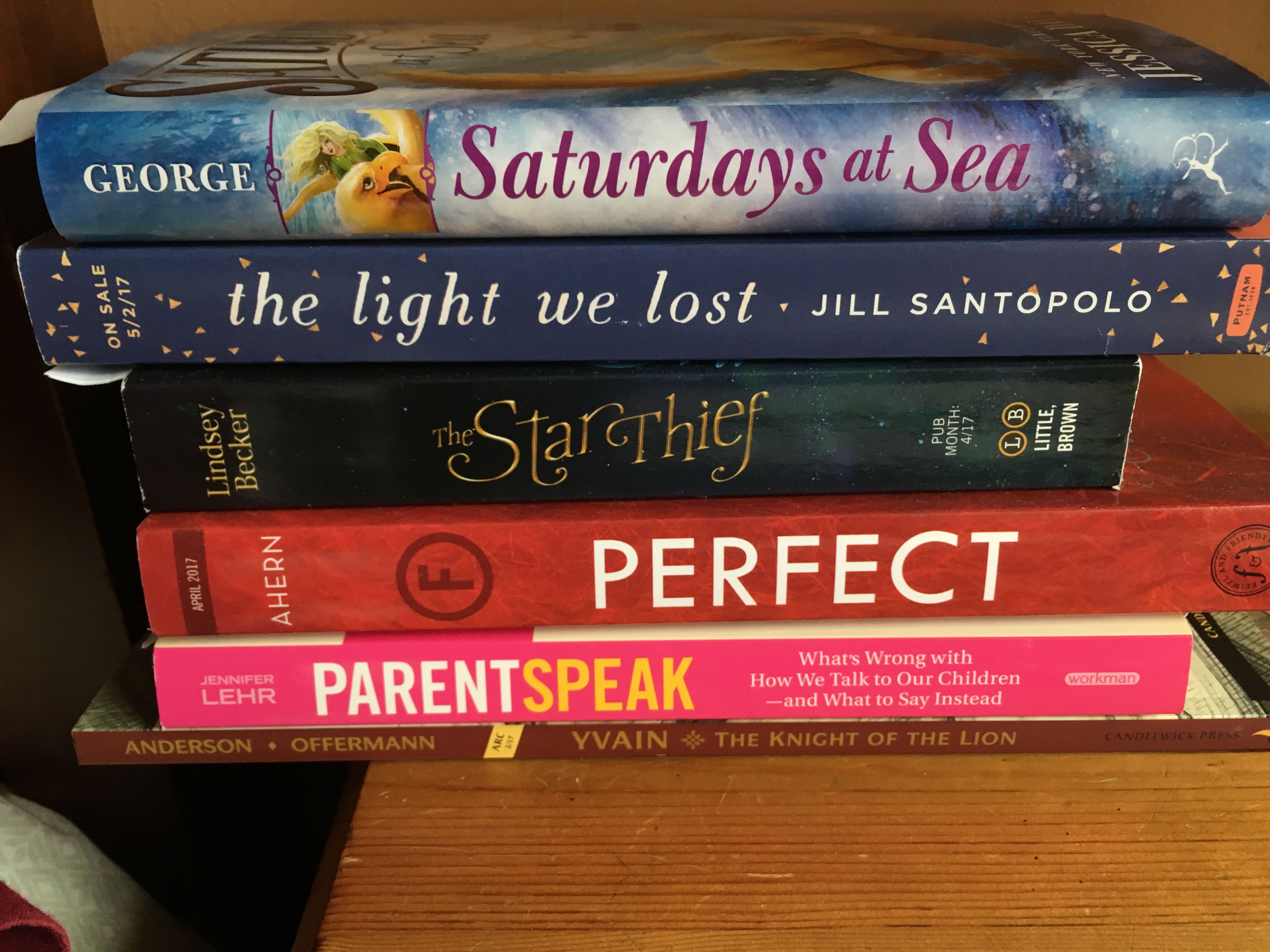 I missed this last week, due to sickness… and I’m actually surprised how small this pile is. Homework isn’t too bad, all things considered, but I still have less time to read. And I’m finding I want to reread more. So, maybe the smallish pile shouldn’t surprise me.