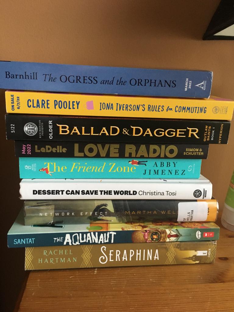 The first four are ARCs that have made it home. I don’t pick the up much anymore, but sometimes people hand them to me at work and I can’t say no. There’s only one holdover from tha past few months! (aren’t you proud of me?) and the erest just seemed fun. Except Saraphina, which is a re-read because the covers are SO PRETTY.