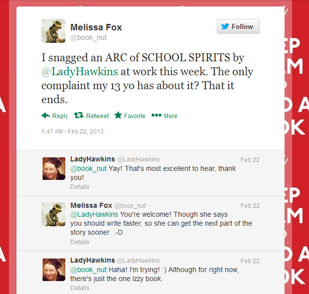 C read Wintergirls, and said it was very creepy and more than slightly disturbing. Mostly because she could never understand why a person would want to be anorexic after their best friend died of the same disease. As she said,”Um, NO.”