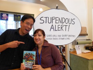 MF: So, Geeks, Girls, and Secret Identities (or GGSI, as we ended up calling it on my Cybils panel), is your first book. Congrats! Can you tell us a bit about the process of how it came to be published?MJ: Thanks! I started writing GGSI in 2006, and after a close call with an agent I started seriously querying other agents in 2009. I ended up signing with the Erin Murphy Literary Agency’s Ammi-Joan Paquette in 2010, but before that happened I somehow managed to blunder my way into a friendship with Arthur Levine – we first connected with each other on Facebook, and in mid-2010 (right after I signed with Joan) I got to meet Arthur at the SCBWI Summer Conference. We really hit it off, and fortunately the manuscript that would become GEEKS, GIRLS, AND SECRET IDENTITIES was ready to go. Arthur read it after the conference, acquired it, and ka-blam, dream come true for yours truly.