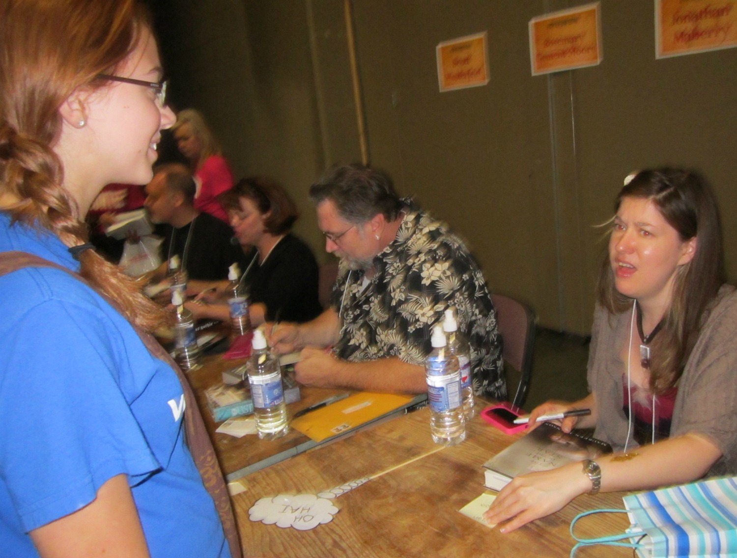 7. I kind of felt bad for all the local authors who were surrounded by more “famous” ones. They didn’t have any lines during the author signing, while Scott Westerfeld’s was halfway across the building. Also, it would have been nice to have more time to be personable with the authors. I know I’m spoiled by KidLitCon, but I wanted to meet David Levithan and Jackson Pearce (I had to be satisfied with snapping a picture from afar) but there wasn’t time to stand in their lines as well. I would have loved it if the authors could have milled more, and been able to chat with the masses.