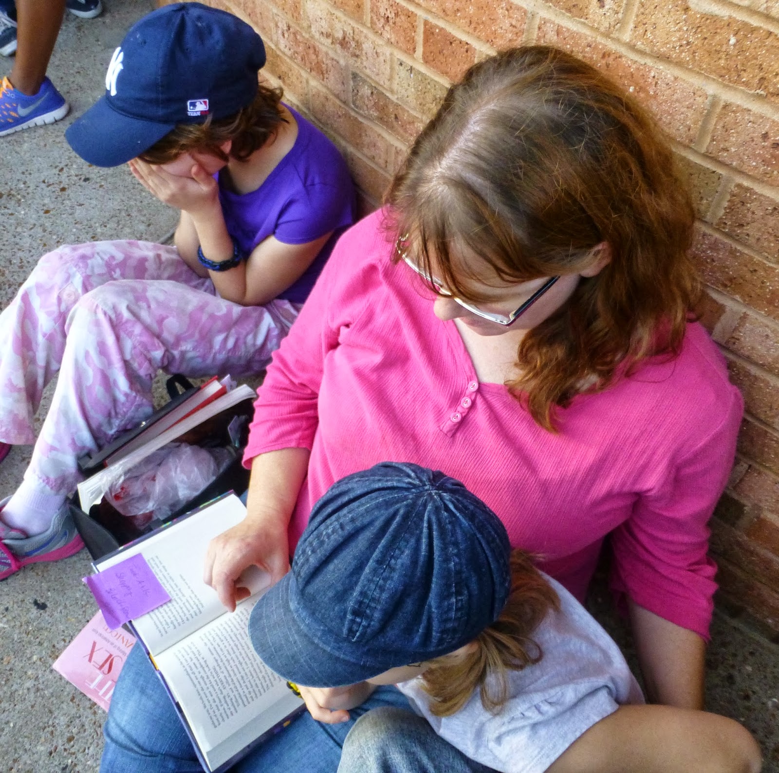 Once we got in, there was more waiting, but we had two copies of the books. They were snagged by A and C.