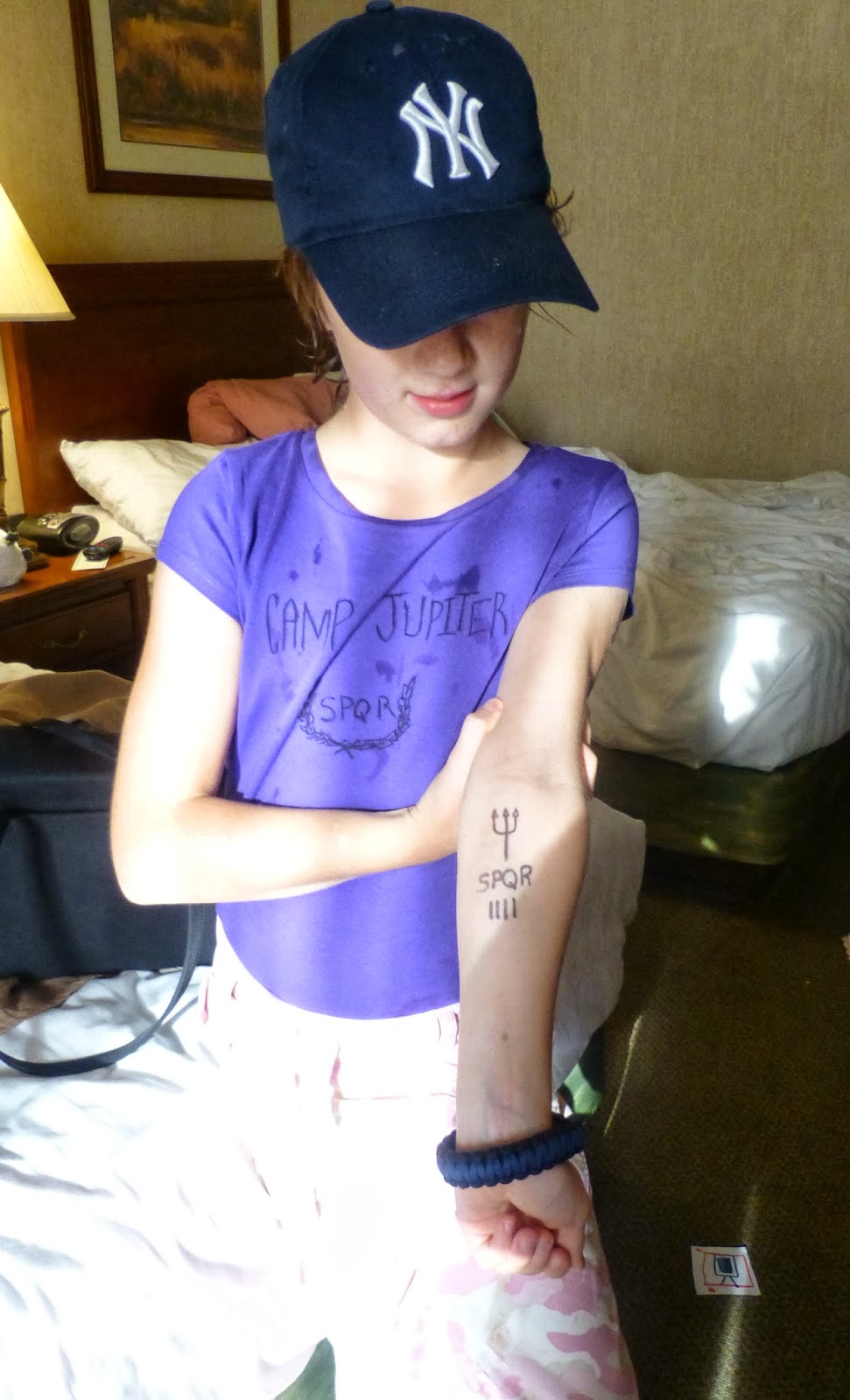 A remembered her Annabeth hat, but forgot her Camp Half Blood shirt, so we made a quick trip to Target and found a purple shirt to make Camp Jupiter.