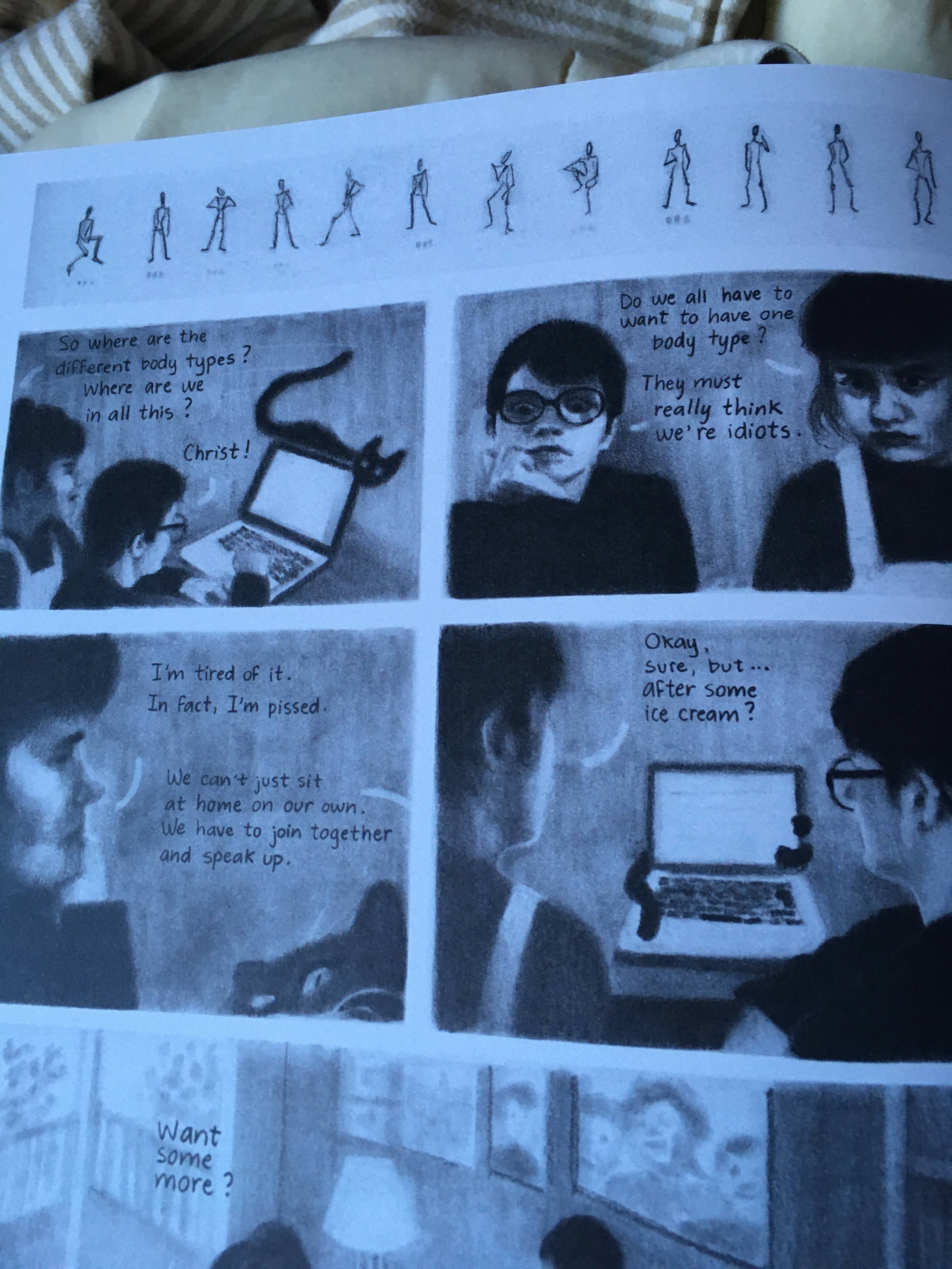 I really liked this one. The art is reminiscent of Persepolis, done all in black and white and with angular lines. But I really liked the exploration of body image and our perceptions of our bodies and how media/industry uses that against us. it was fascinating and important and just a good story of a girl figuring (some) things out.