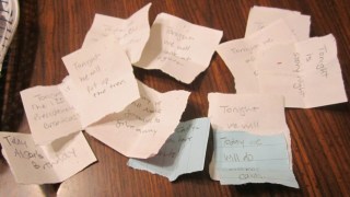Then, every morning, I write down that day’s event on a little slip of paper, and stick it in the pocket.