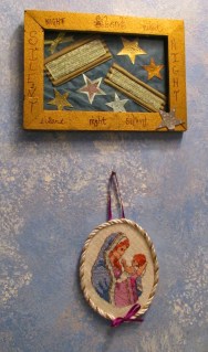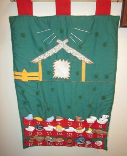My mother-in-law gave us this many, many years ago. The one I grew up with was a Christmas tree with ornaments, which my mother had made.