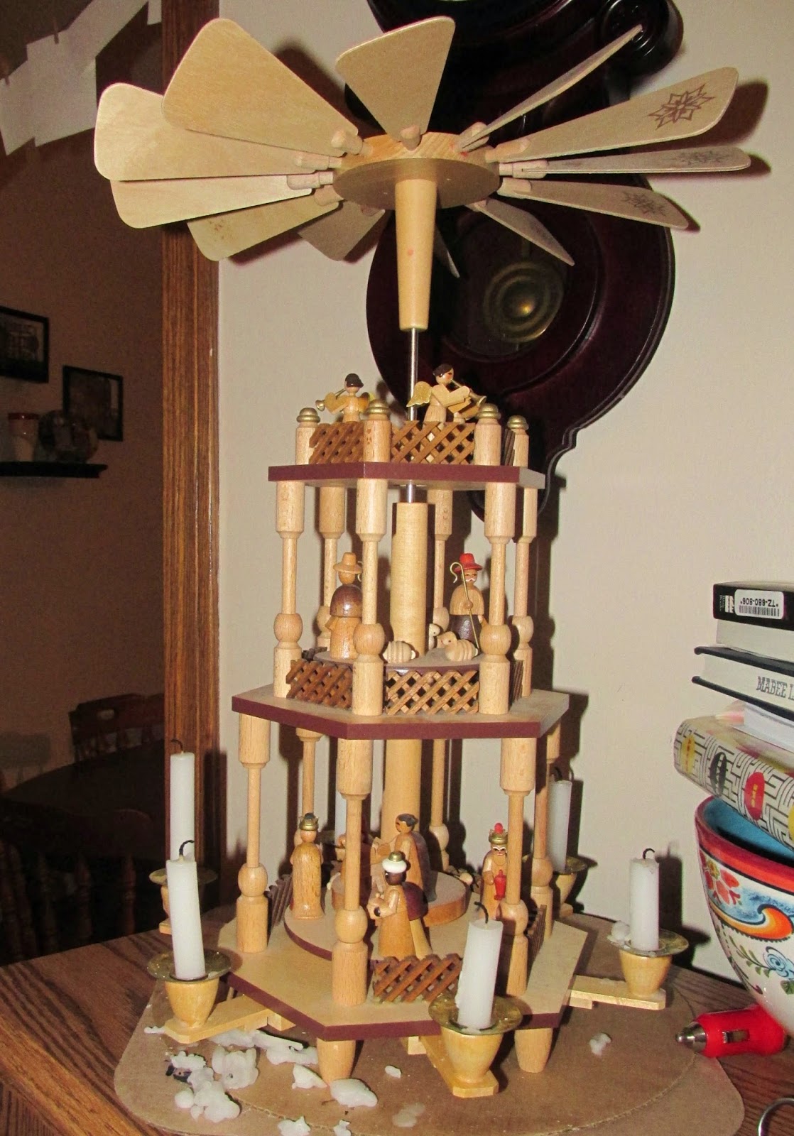 This one we actually got in Rothenberg, Germany, when we went there on a day trip the summer of 1999. It gets used twice a year, once on story night, and once on Christmas Eve. Which is probably why it’s not turning as well as it used to.